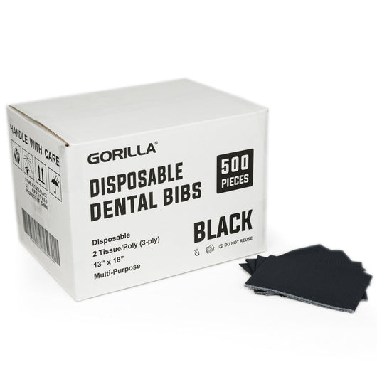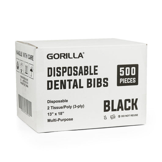 Black Disposable Lap Cloths / Dental Bibs 13" x 18" (500/Case) - Gorilla